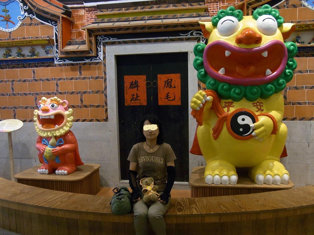 待合室の傍には、風獅爺をモデルにした?置物が。