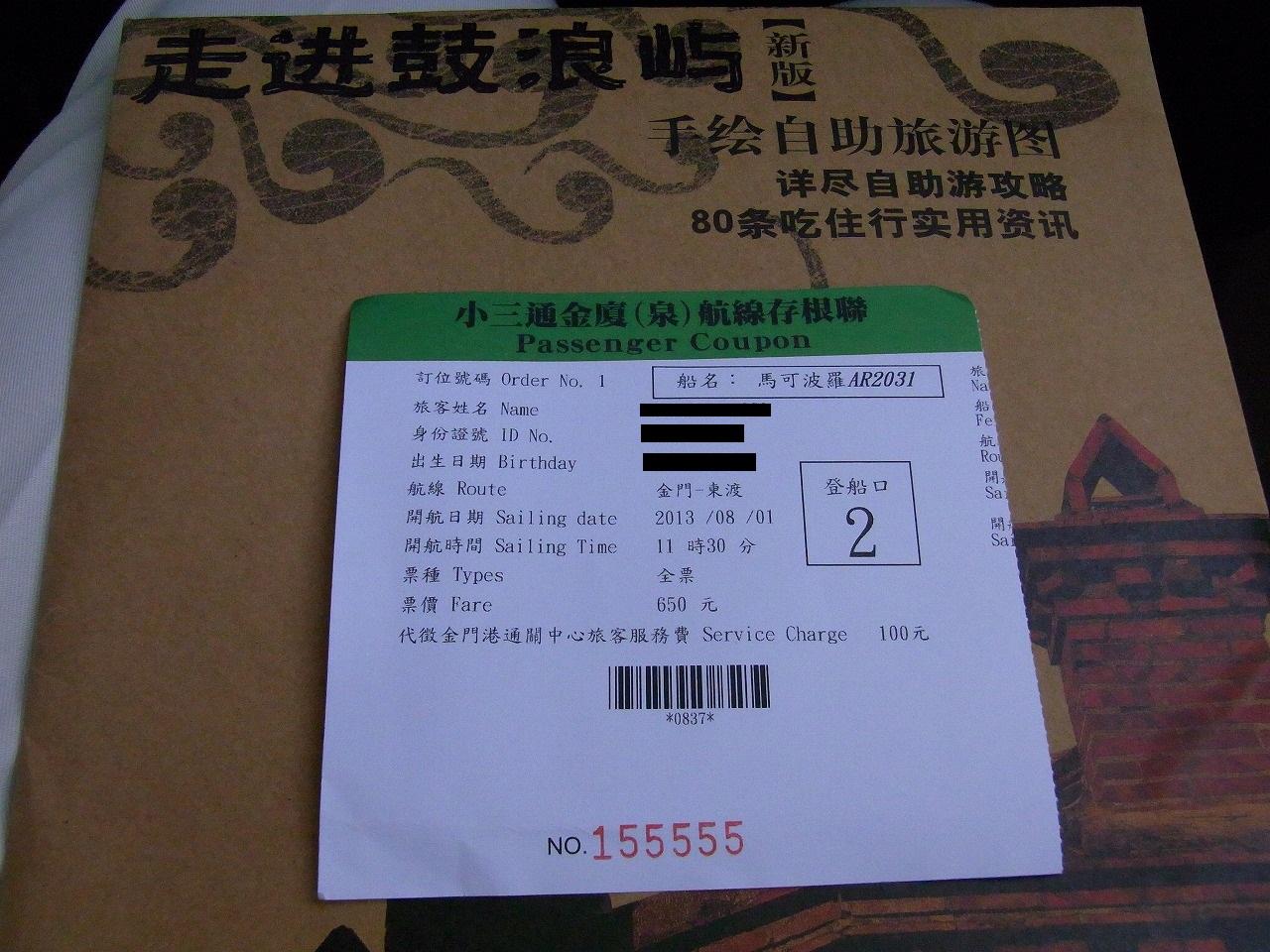 3、金門水頭碼頭~廈門東渡碼頭往復乗船券
