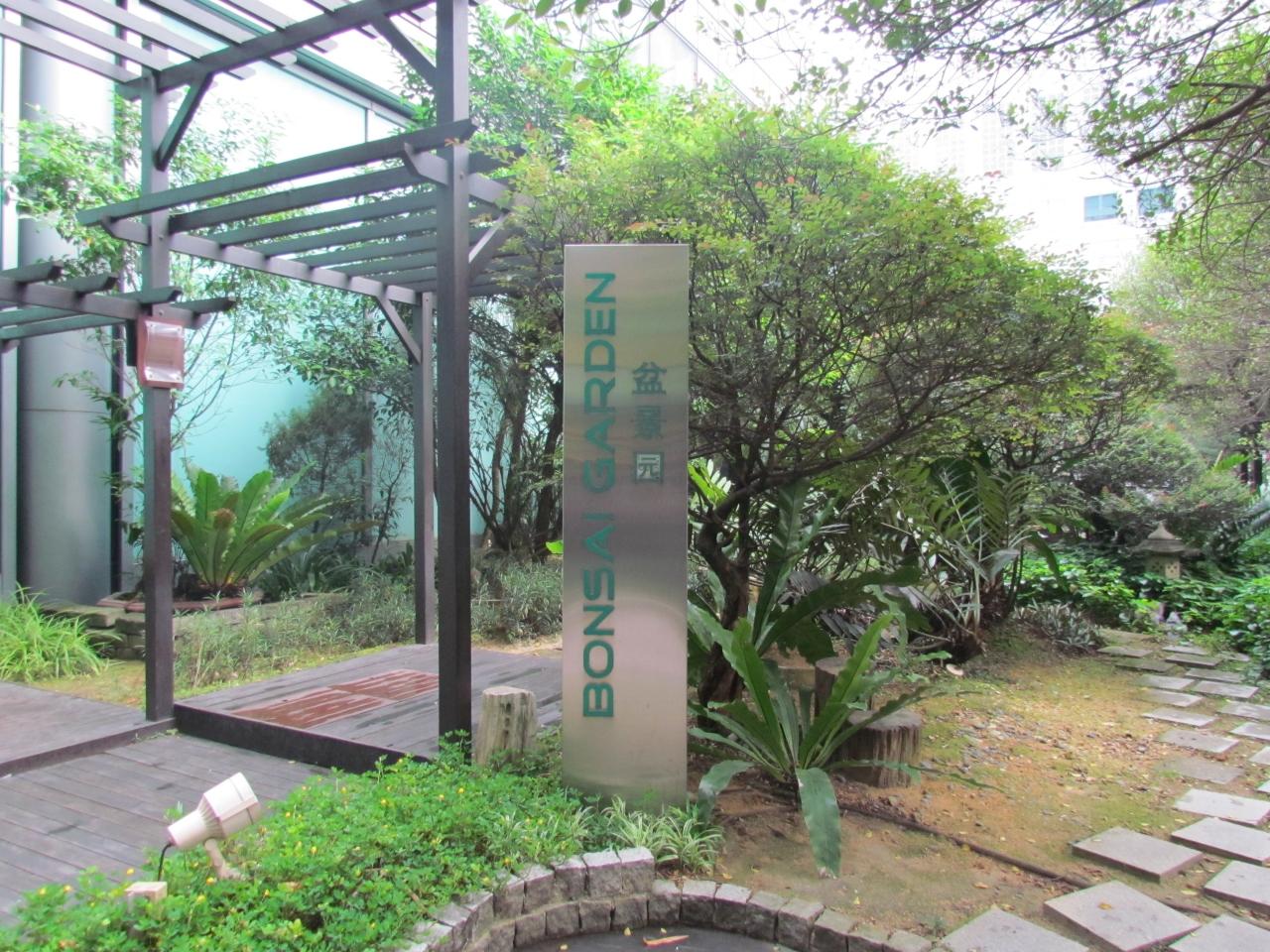 所々地上を歩くことはあったけど、基本的にはずっと中を通って行けるので、涼しくて快適。ちょっと小雨が降っていたので、外を歩かずにすむのは、本当に良かった。ようやく、目的地へ到着。小さな盆栽ガーデンの隣にあるのだが…