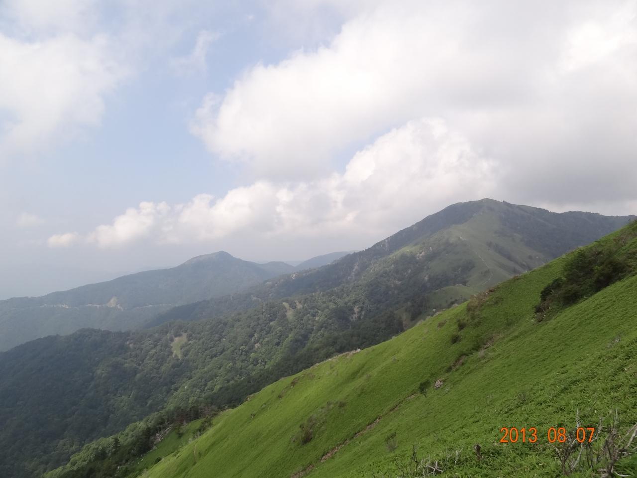 西の方向 右端に 塔の丸、一番奥に見える三嶺は、頂上付近