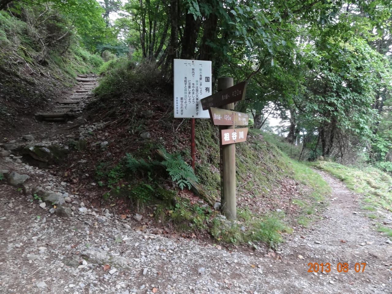 帰路は、登って来た山道を三嶺への縦走路側に下り、丸石方面に降りて行きます。