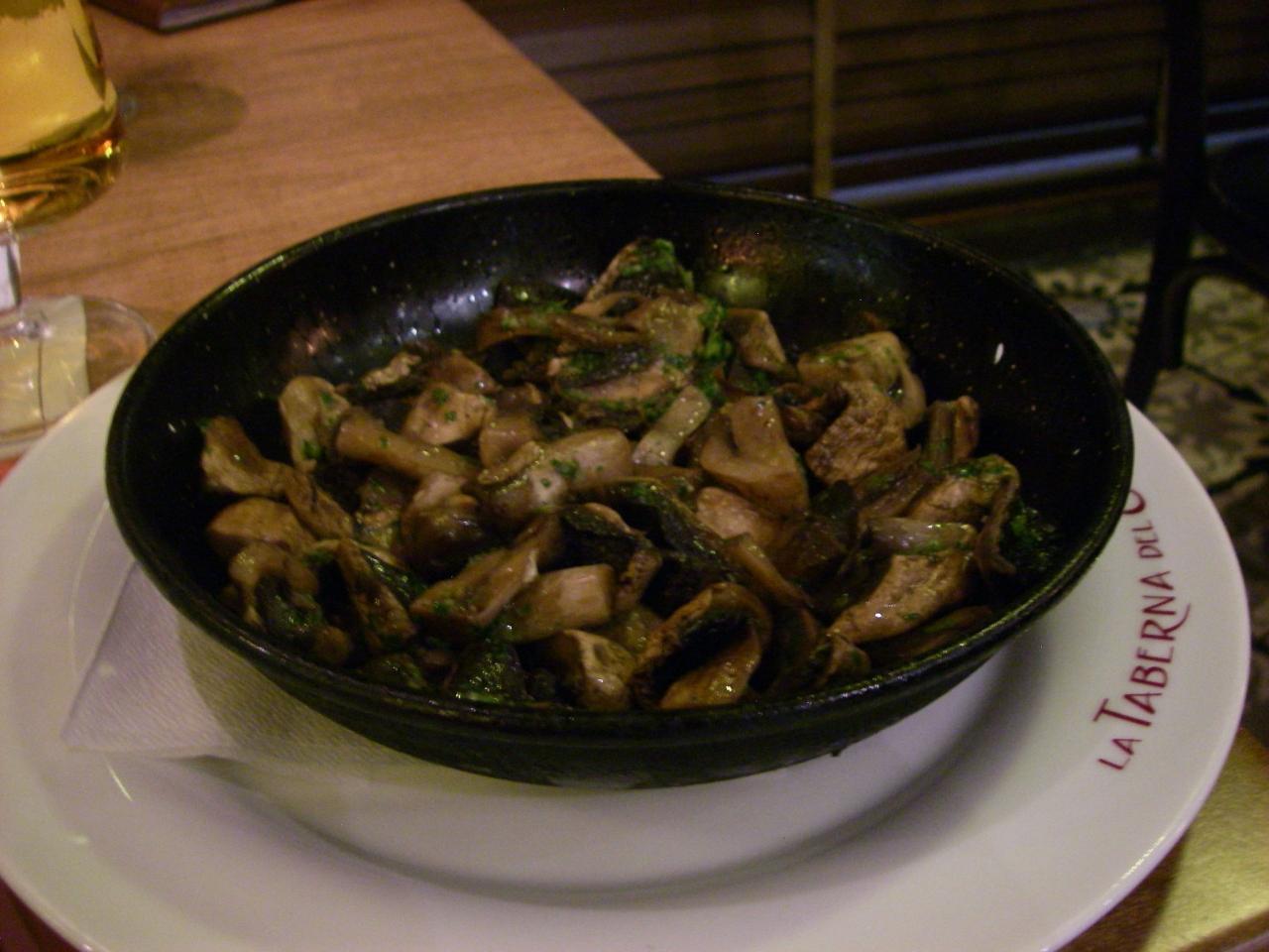 キノコのソテー、6ユーロ。値段は安いが味はイマイチ。カル・ペップでもっと頼んでおけばよかったと反省した。