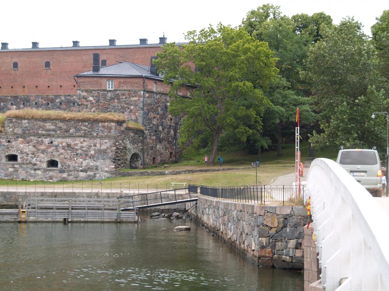 スオメンリンナ博物館前の橋。要塞の中心部に向かう。この博物館は、ショップも兼ねており公共トイレの最終点である。