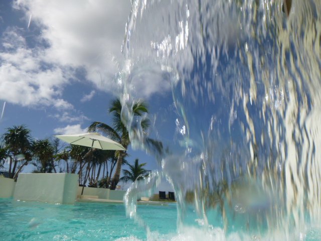 15時頃、台風の影響で周辺ビーチは閉鎖のため、朝も行ったホテル隣の海へ。