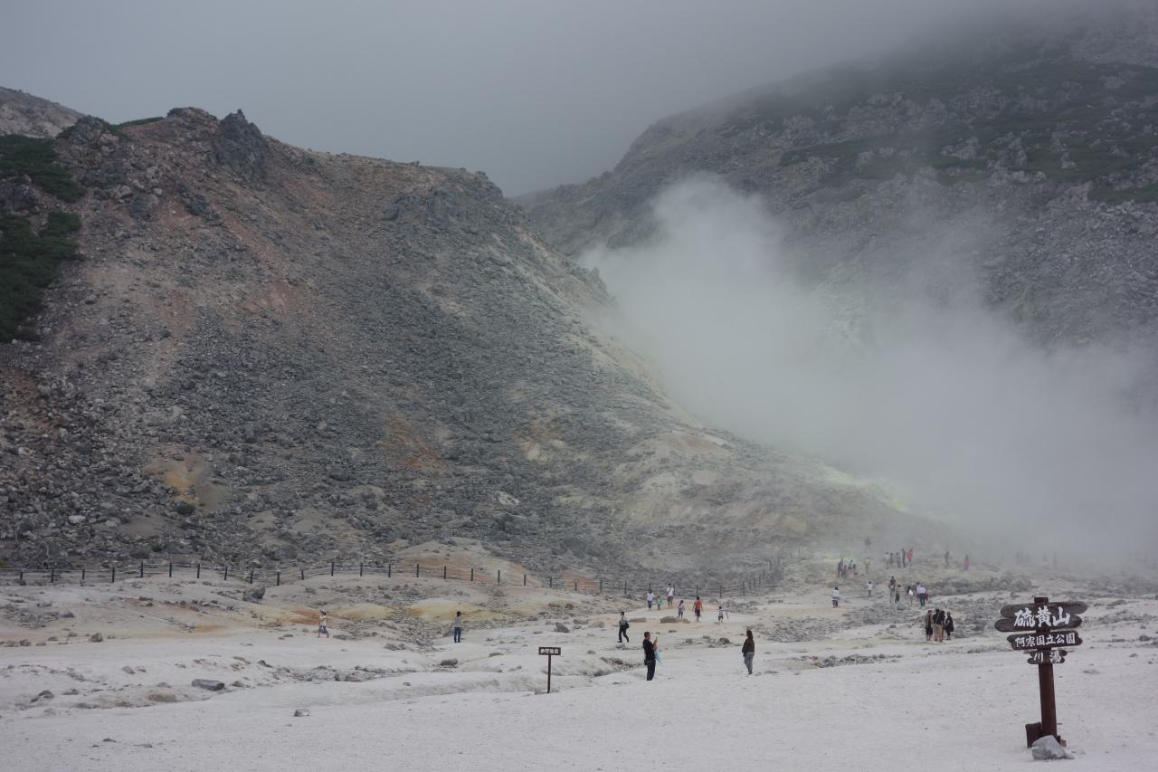 強烈な硫黄臭のなか、駐車料を払いなさいといわれる。