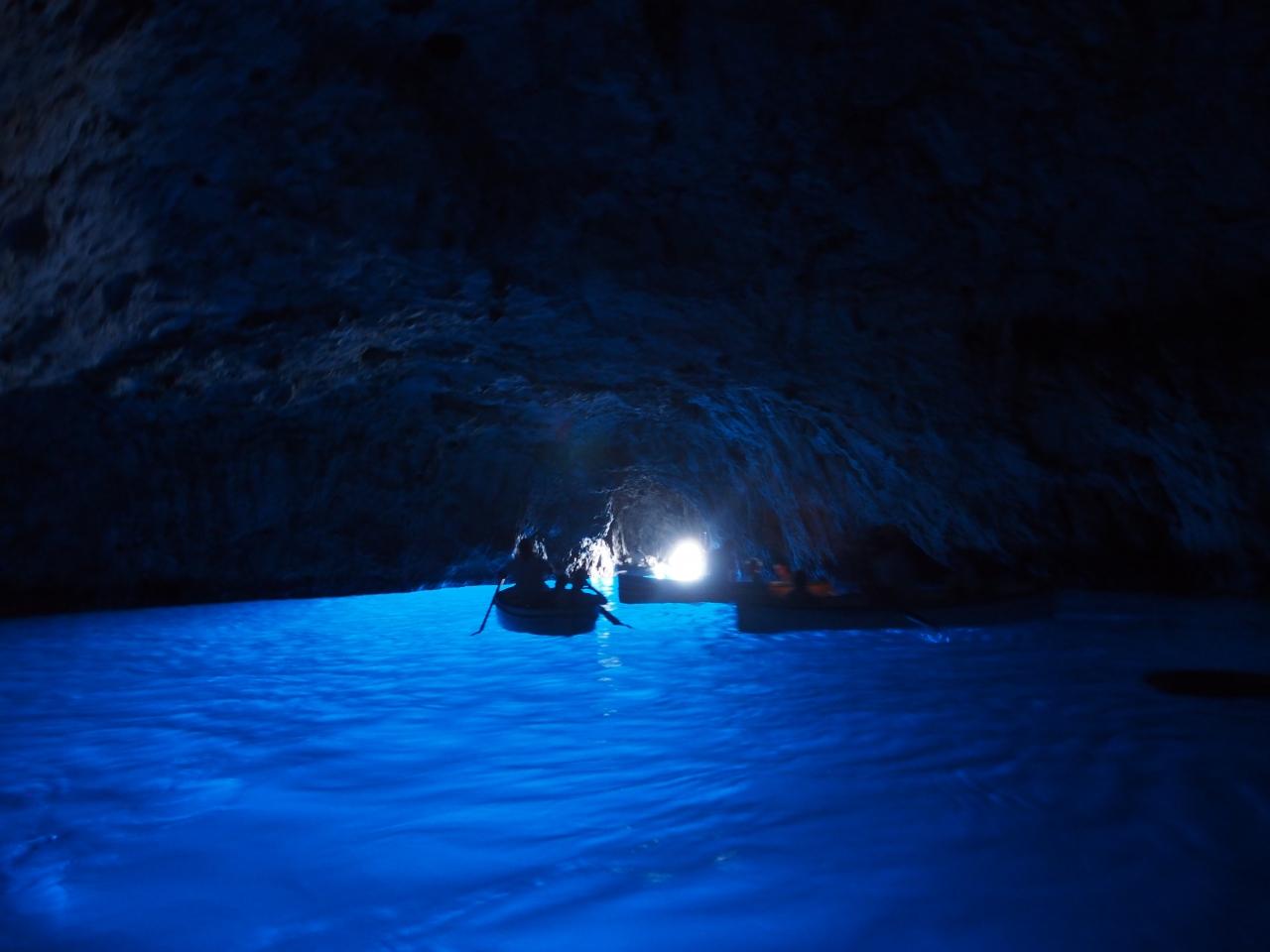 ツアーの船は小舟を引っ張って行くものがあるそうです。小舟がついているいる時は青の洞窟に入れる時