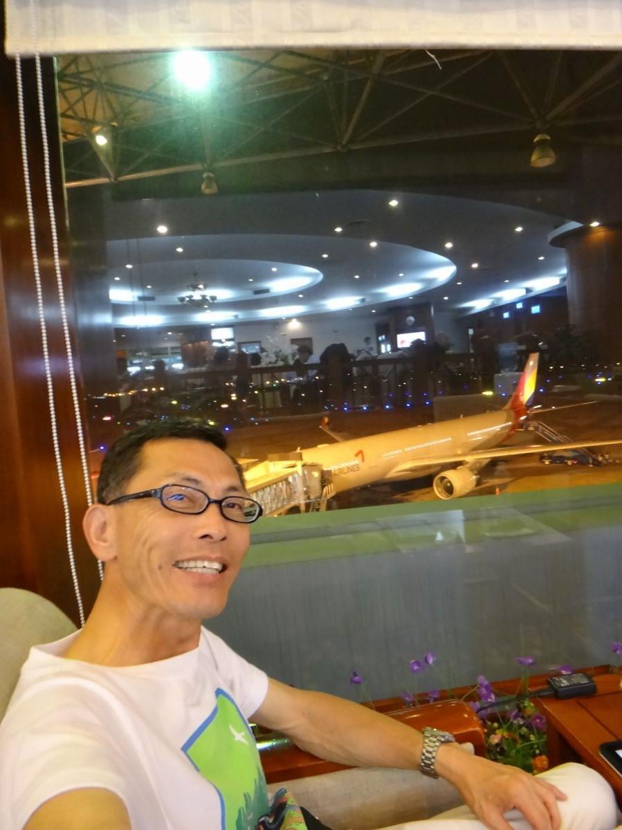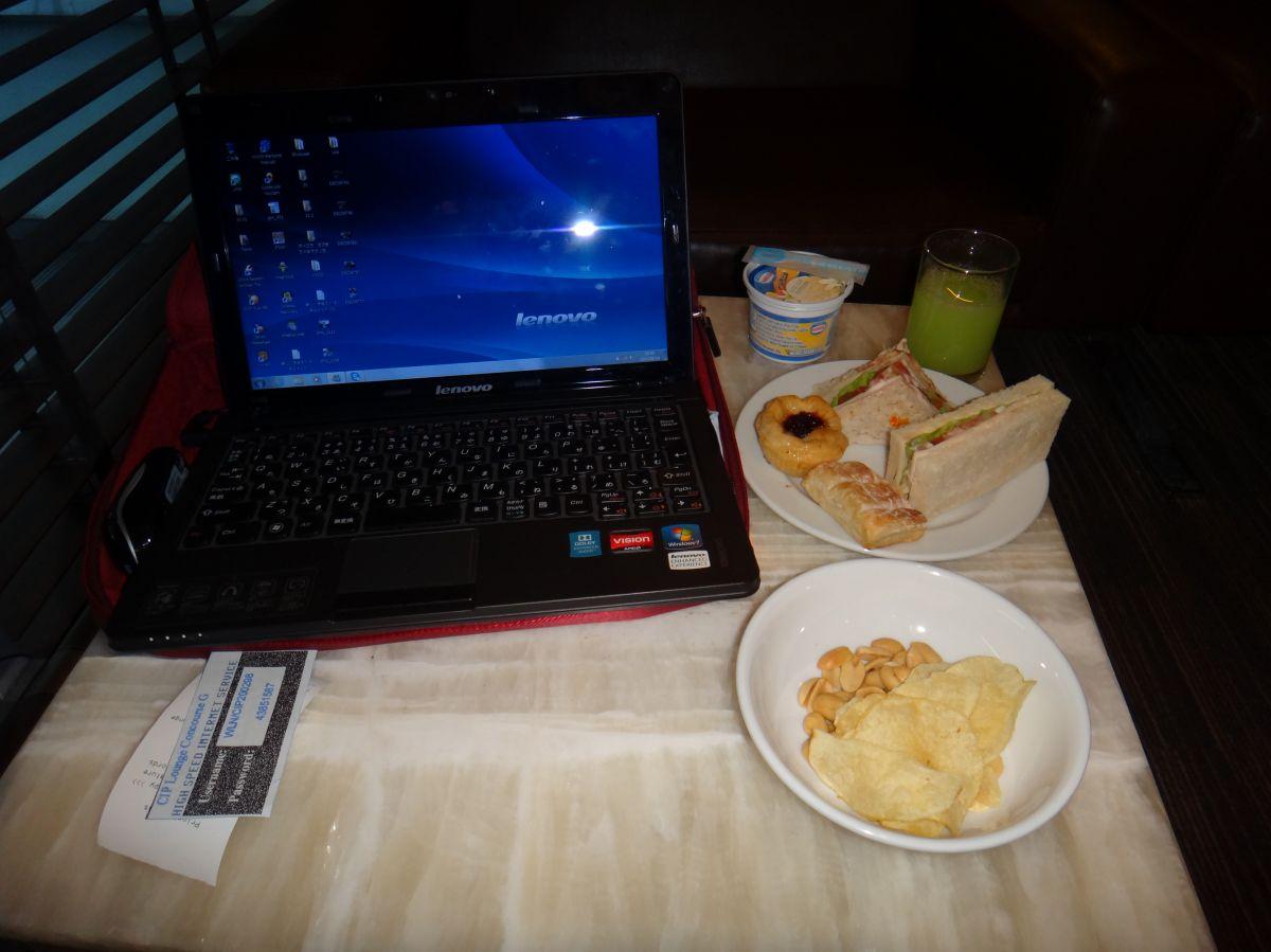 乗り継ぎの間、ラウンジでくつろぐ