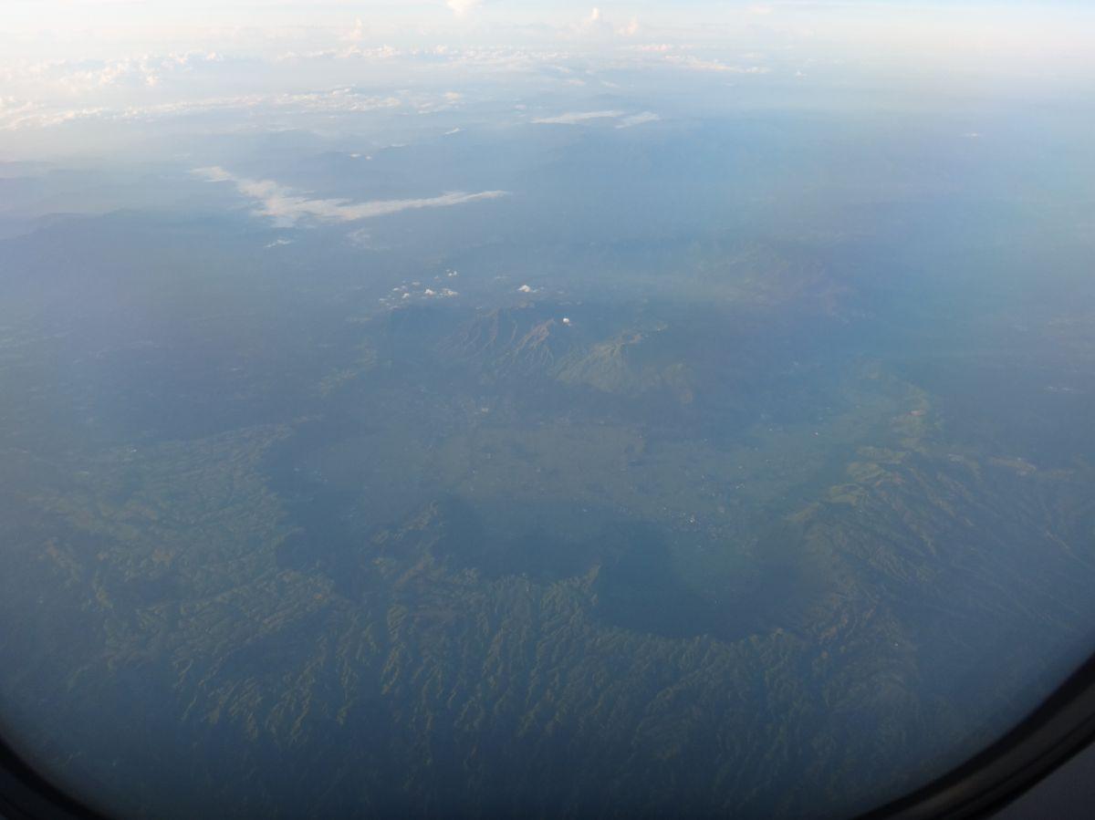 食事を終え、サンシェードをあげると、眼下に「阿蘇山」が見えた