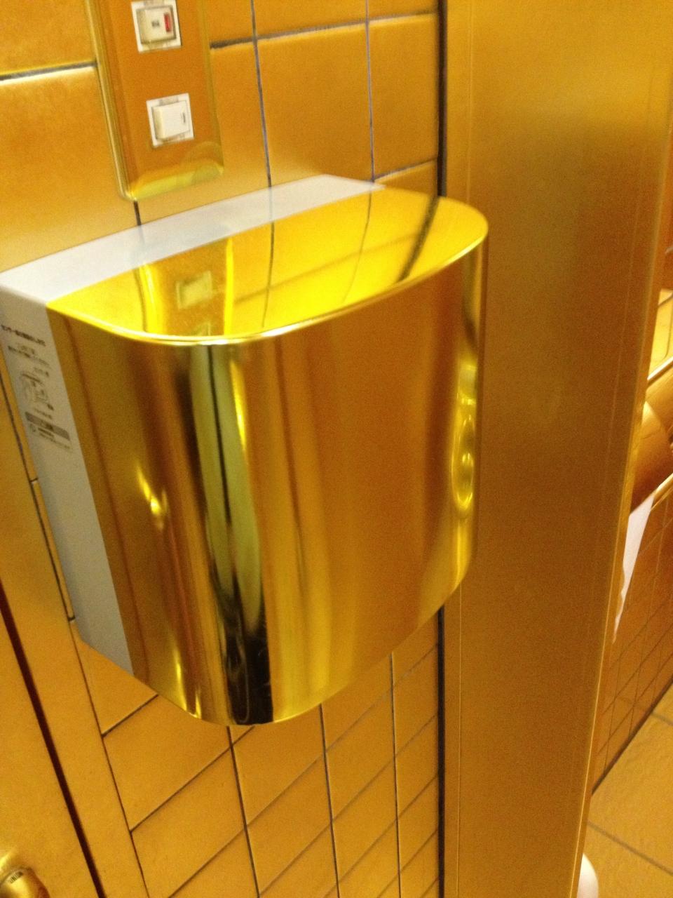 手洗いのあとの乾燥機まで金ピカに塗られてます。