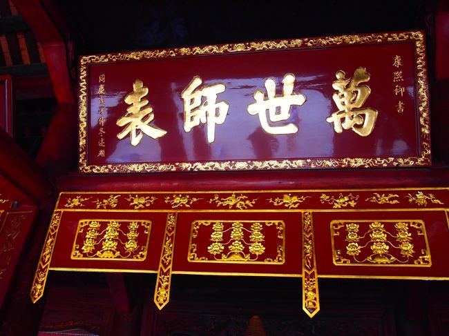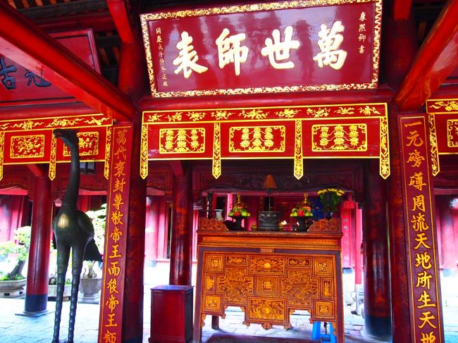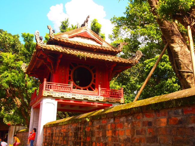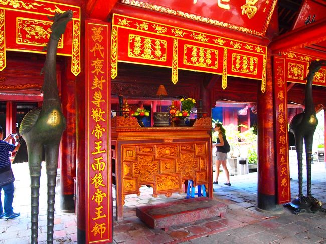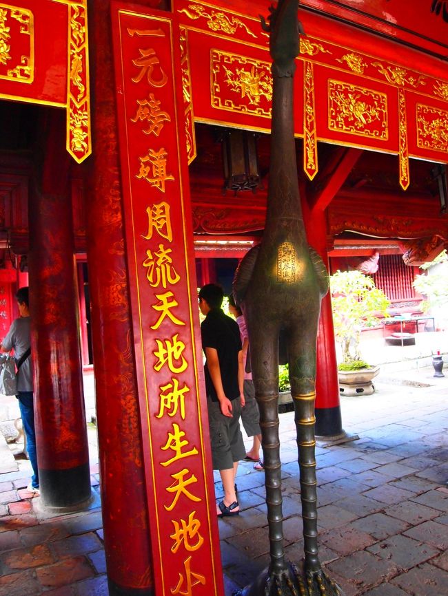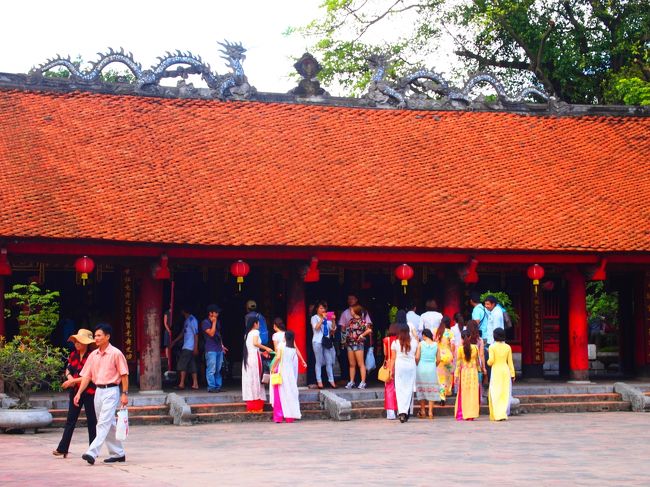 孔子を祀るために建立された廟で、孔子廟とも呼ばれているそうです〜1076年には国内初の大学・国子監が敷地内におかれ、王族・貴族の子弟や官僚が学んでいましたが、これにより、学問にご利益のある場所として、観光客だけでなく多くのベトナム人が訪れていて、人が多かったです!