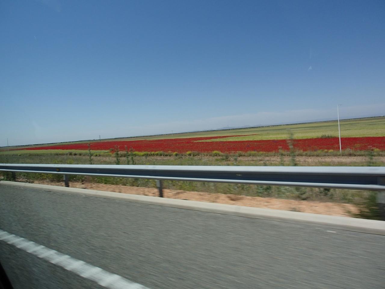 街を抜けて高速道路へ。アマポーラの花畑が広がる草原の中を、スペインのお話を色々聞きながらアランフェスに向かいます。車の中ではアランフェス協奏曲が!