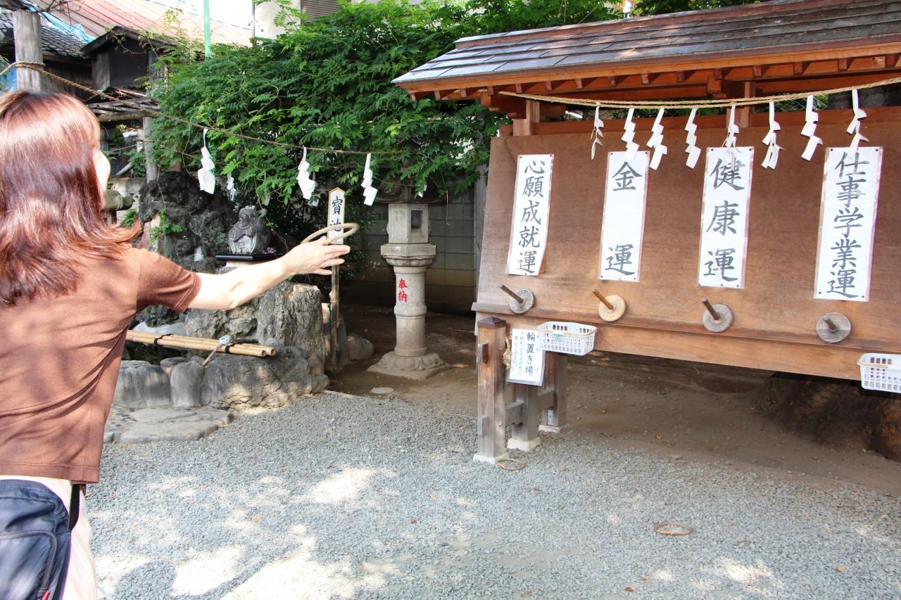 まずは、社を詣で、運試しの輪投げに挑戦する。