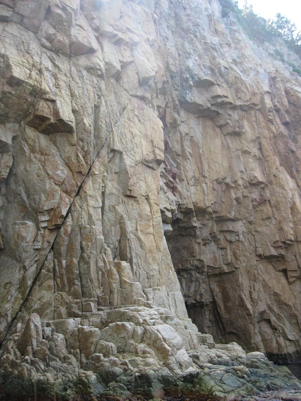 堆積岩の岩場になると、ちょっと海の色も違ってみえます。