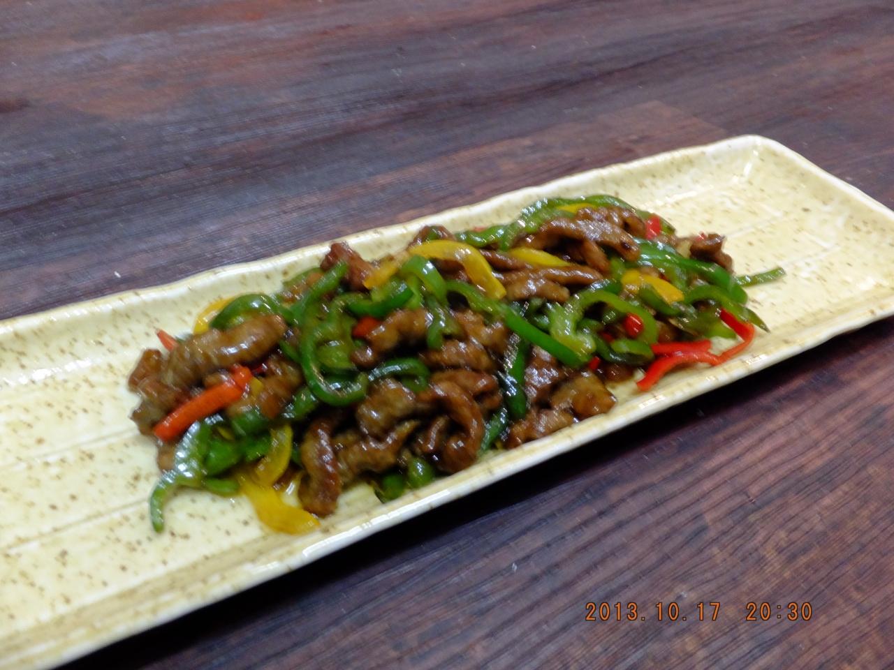 牛肉と三種ピーマンの炒め。