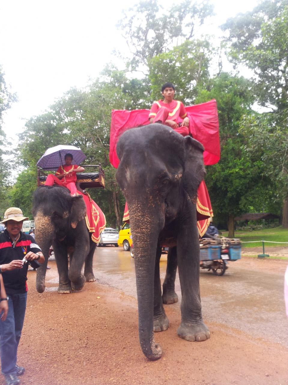 アンコールトムの中を象にのって観光できます。