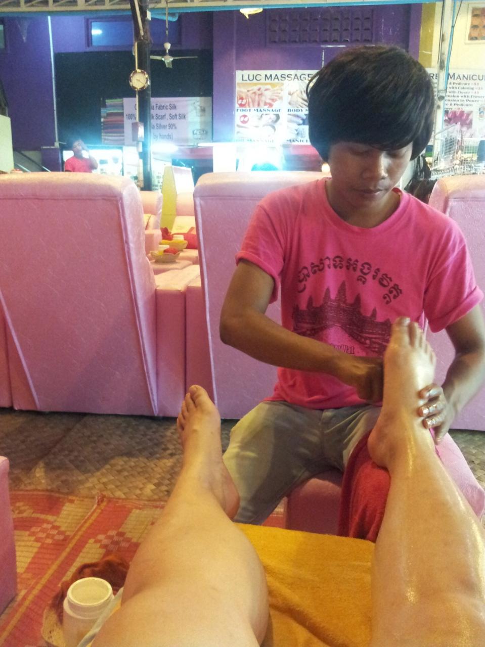 マッサージ中、おかまショーやってました。