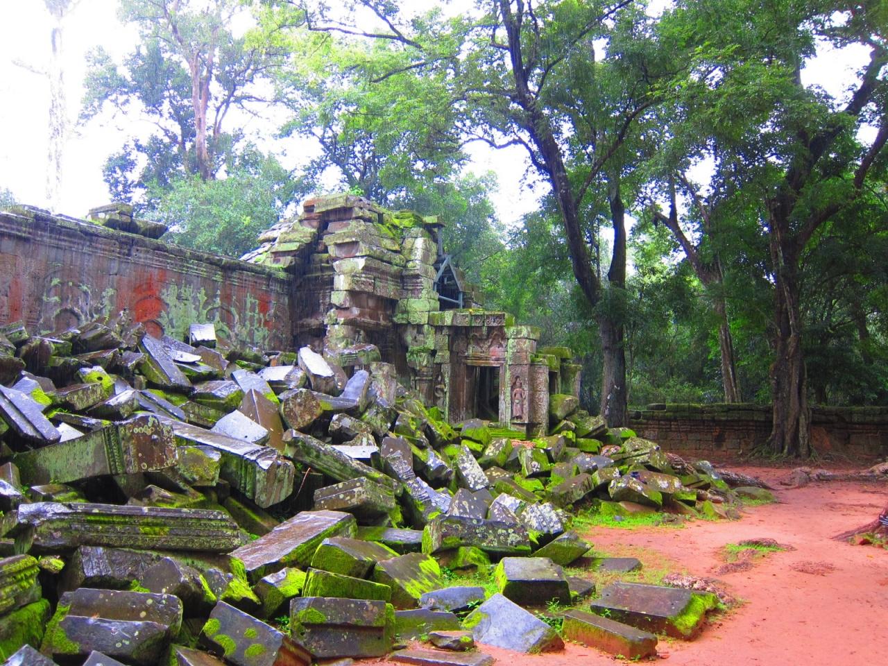 どこの遺跡もそうですが、森の中にある遺跡は雨季だと緑が多くて、癒し効果があります。