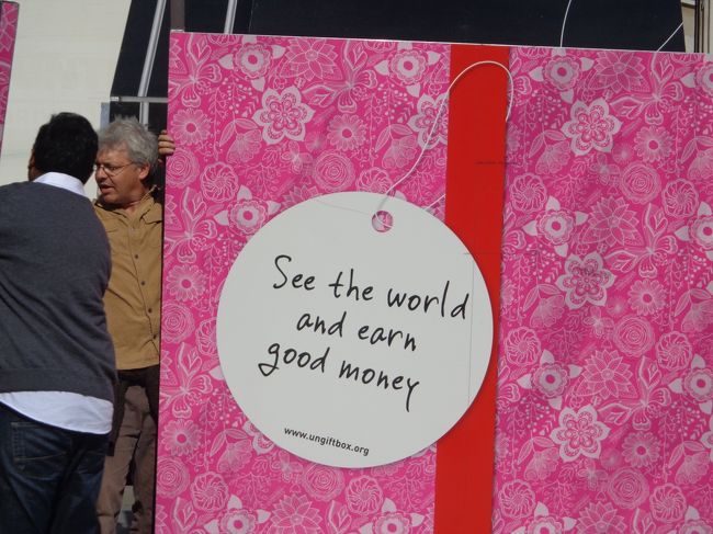 ナショナルギャラリー前では地面に色んな国の国旗を描いている人たちがいました。