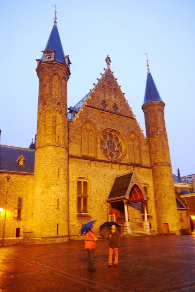 誰か分からないおじ様の後ろに市庁舎の尖塔が見えます -
