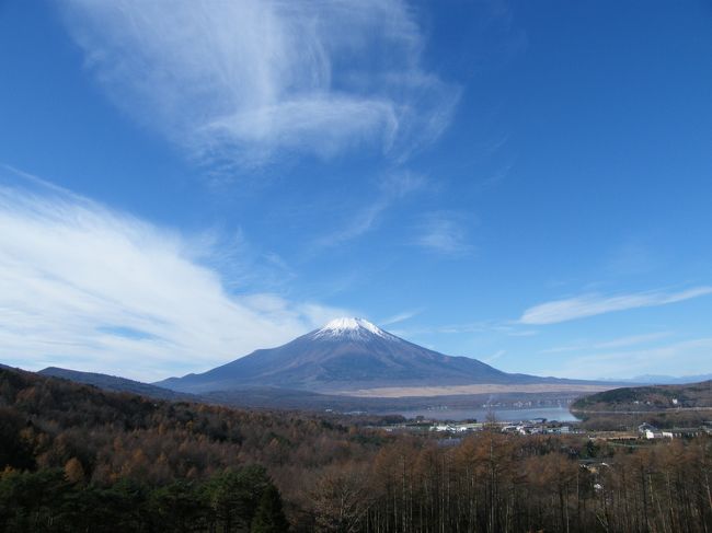山中湖村マリモ通り駐車場から眺める富士山。風の穏やかな日には逆さ富士が見られます。