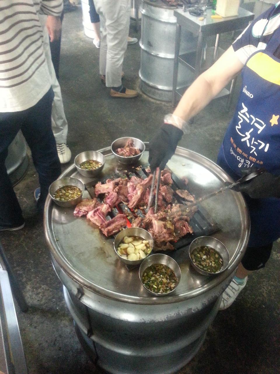 数時間前サムギョプサルをたらふく食べたのに2人で半分ペロッと食べちゃいます。 -