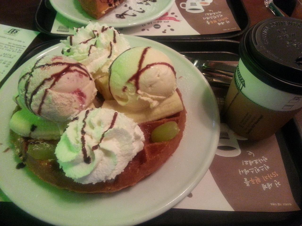 ワッフルはベルギーワッフルみたいな外カリカリ中もっちりタイプで美味しかったです。