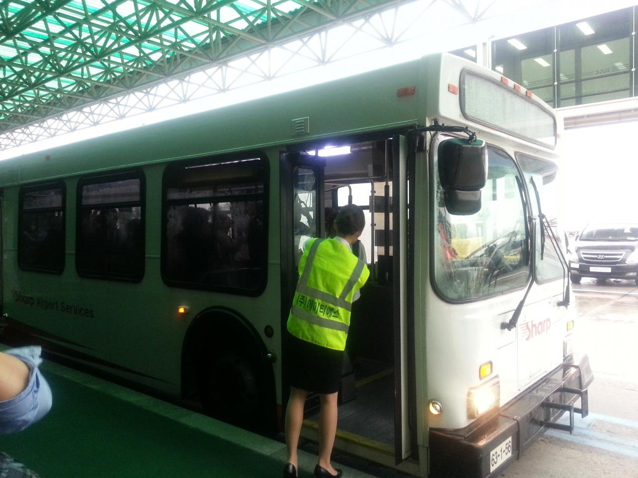 バスに乗って飛行機まで移動。
