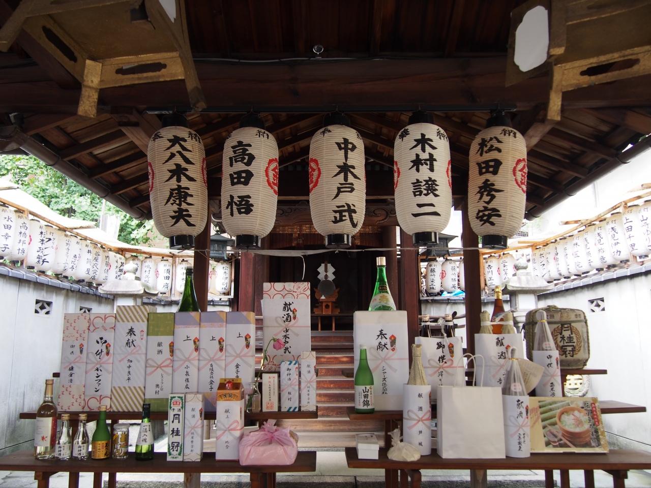 お金に纏わる御金神社、沢山のお酒が奉納されています。