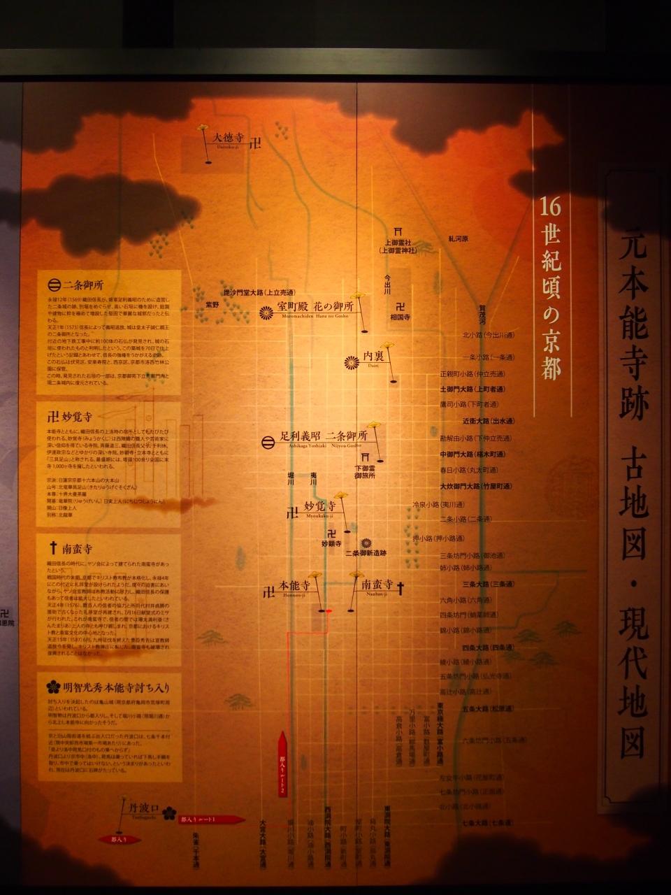 ガラスの下は、安土桃山時代の地層まで掘り下げ、採取した本能寺が燃えて土になった焦土です。
