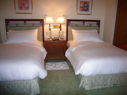 ふかふかのベッドに、ターンダウン後は足元にマットと、スリッパが用意されています。 -