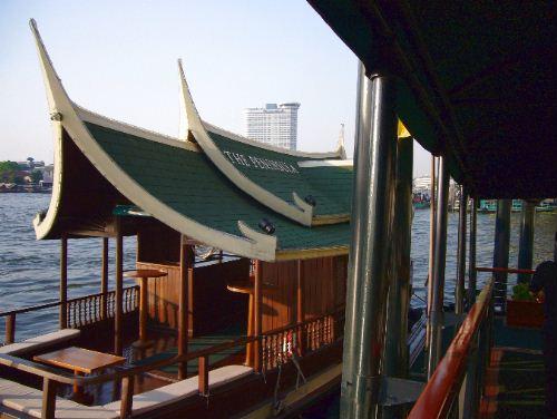 窓の外を見てみると、チャオプラヤ川に各ホテルのシャトルボート。何度もこのボートで対岸のサパーンタクシン駅に行きました。