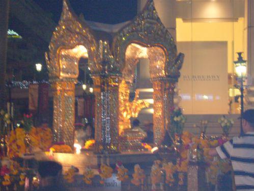黄色いお花と長い線香を買い、4面ある仏像へ願い事を祈るというスタイル。連日人・人・人で願いが叶ったら、横の受付でお礼参りの奉納をお願いしタイ古式舞踊を踊ってもらいます。