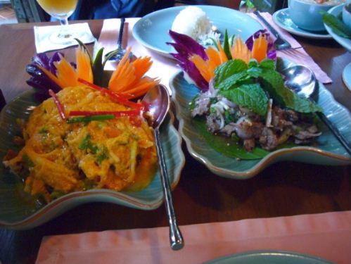 やっぱりタイ料理は食べなければ。チャーンビールにグリーンカレー+野菜炒め。ココナッツが効いたタイのグリーンカレーはとても美味しかった。初日からアクティブな1日でした。 -