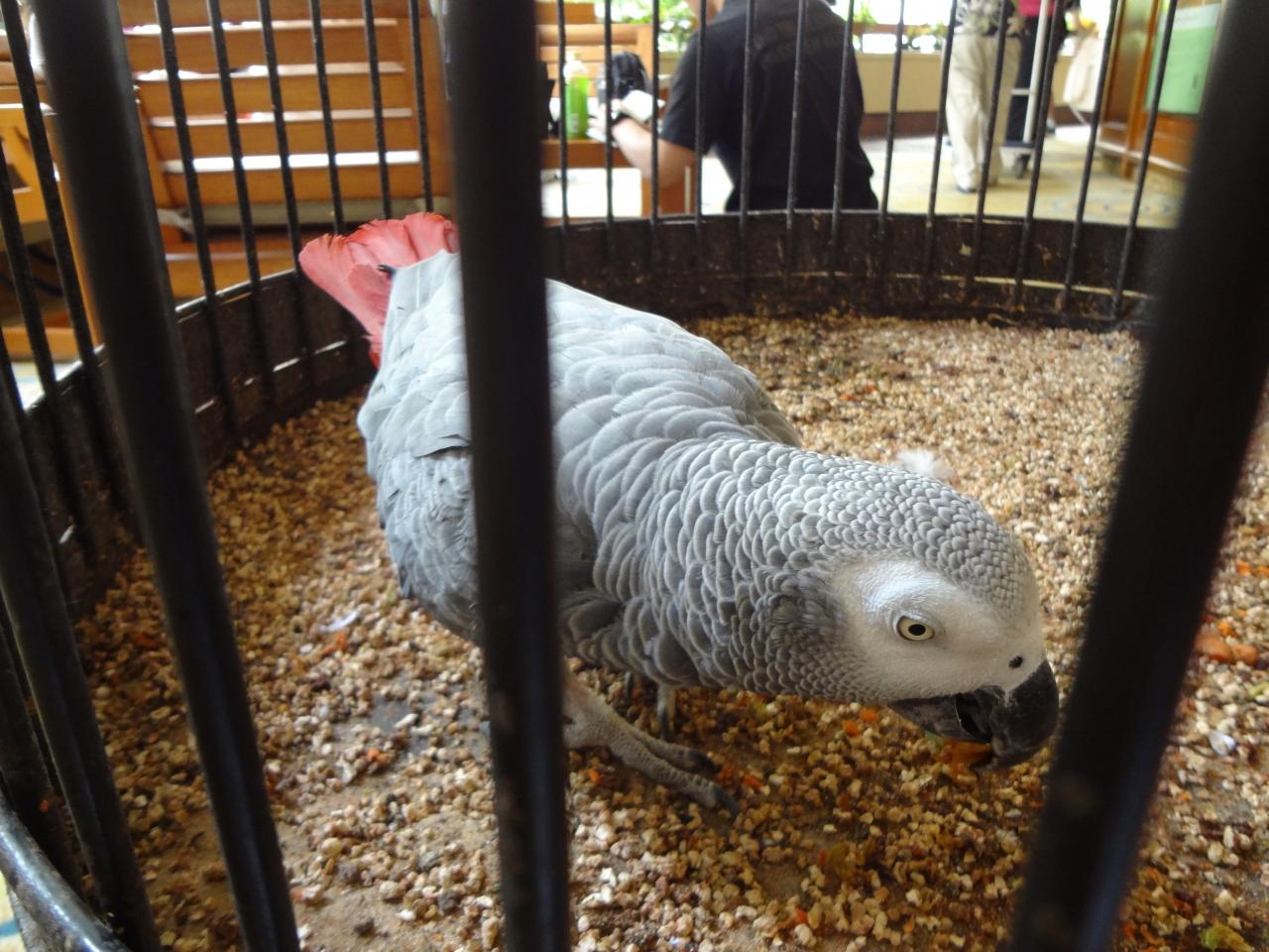 ロビーに可愛いマスコットがいました。ヨウムですね。おしゃべりが得意な鳥です。反対側にはアオボウシインコもいました。可愛い〜♪