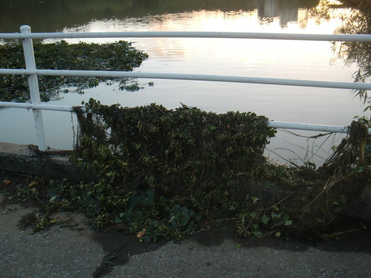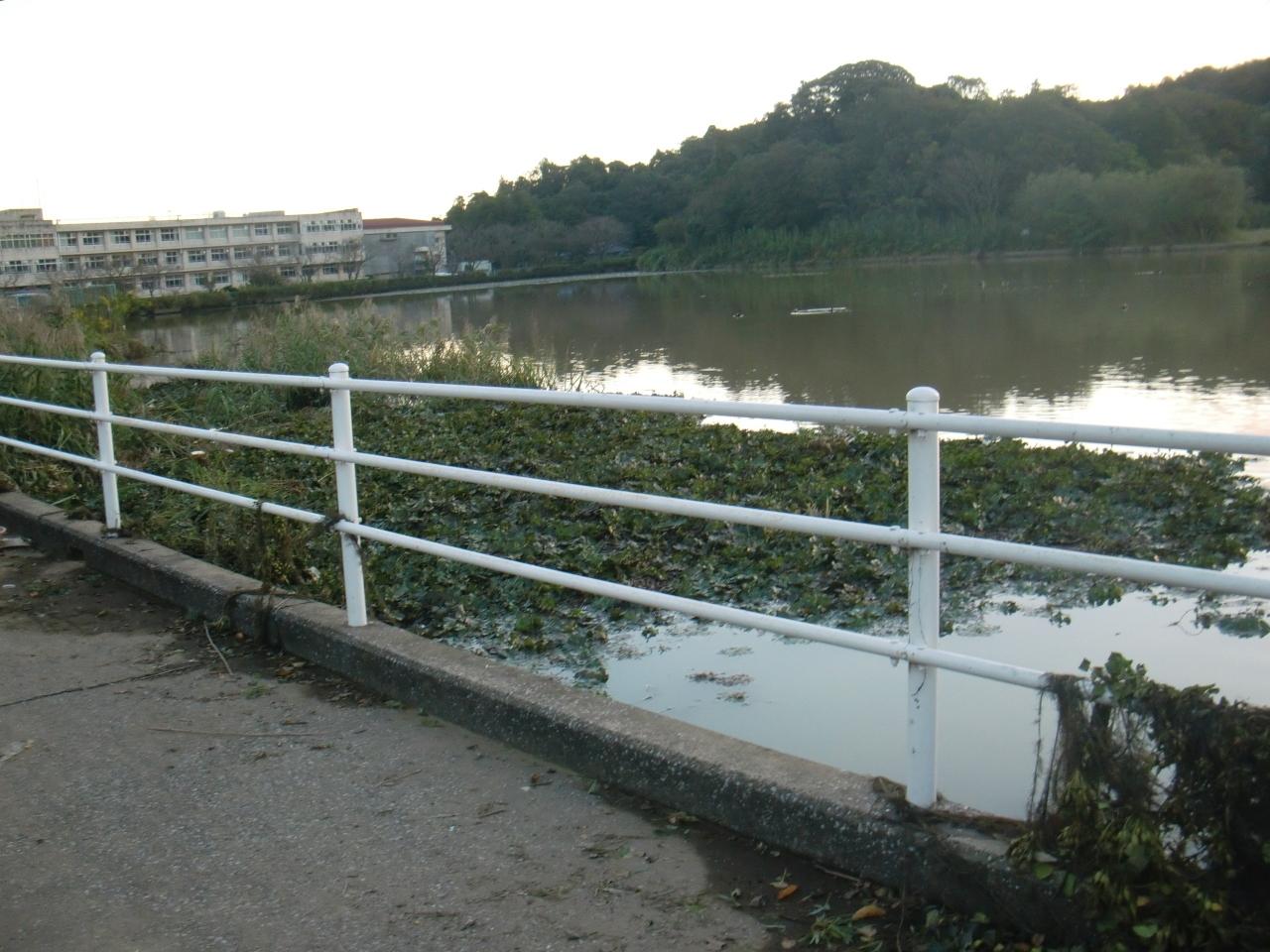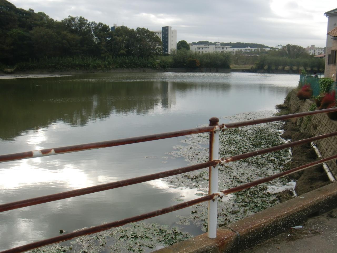 台風前、葎堰は 一面 藻で 覆われていましたが、
