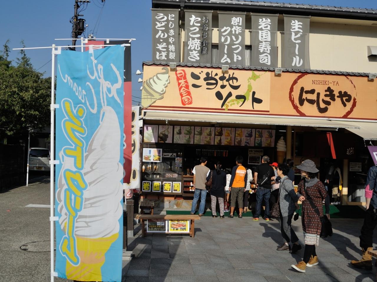 橋を渡って岩国城方面に向かうと、ソフトクリーム屋がありました。