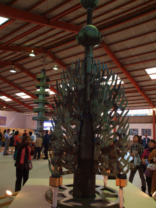 東塔解体で地上に降ろされた水煙をまじかに見学するのが一番の目的でした。