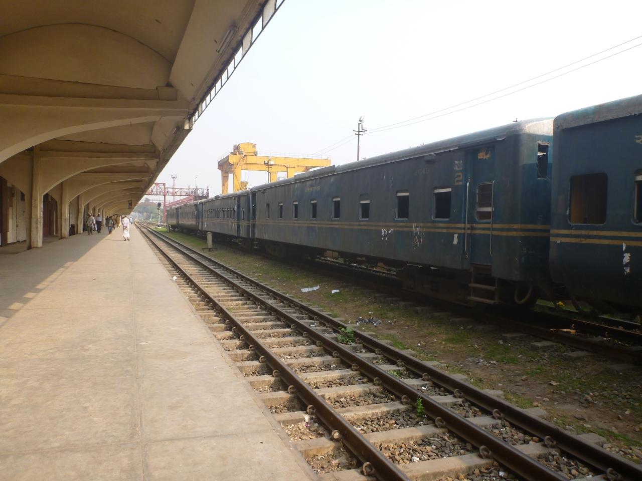 駅周辺は人多し。5分ぐらいでナラヤンゴンジ行きのホームへ移動し、リキシャマンがあそこで切符を買えと。
