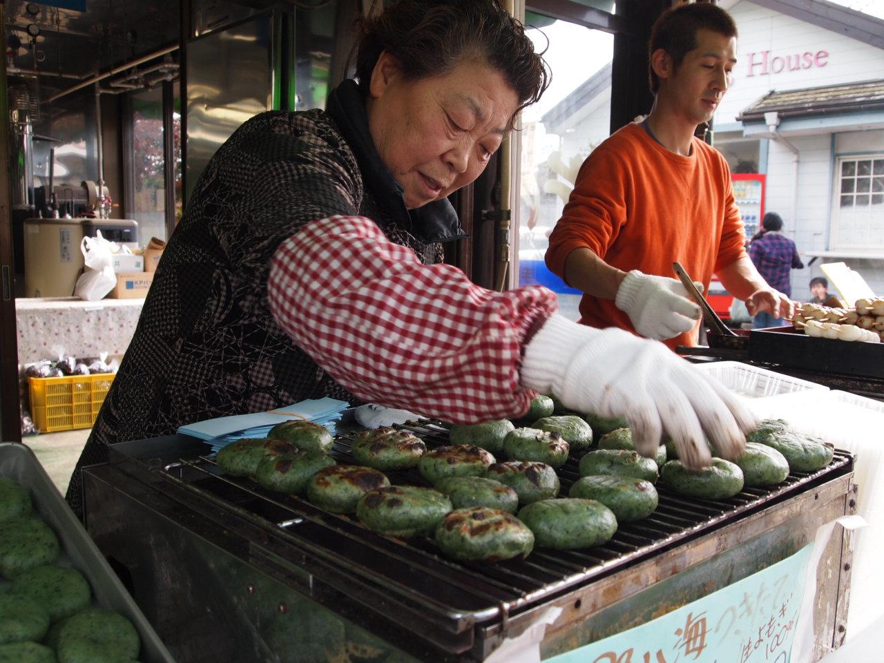 こちらのおばちゃんが焼いている草餅がとっても美味しかったです。