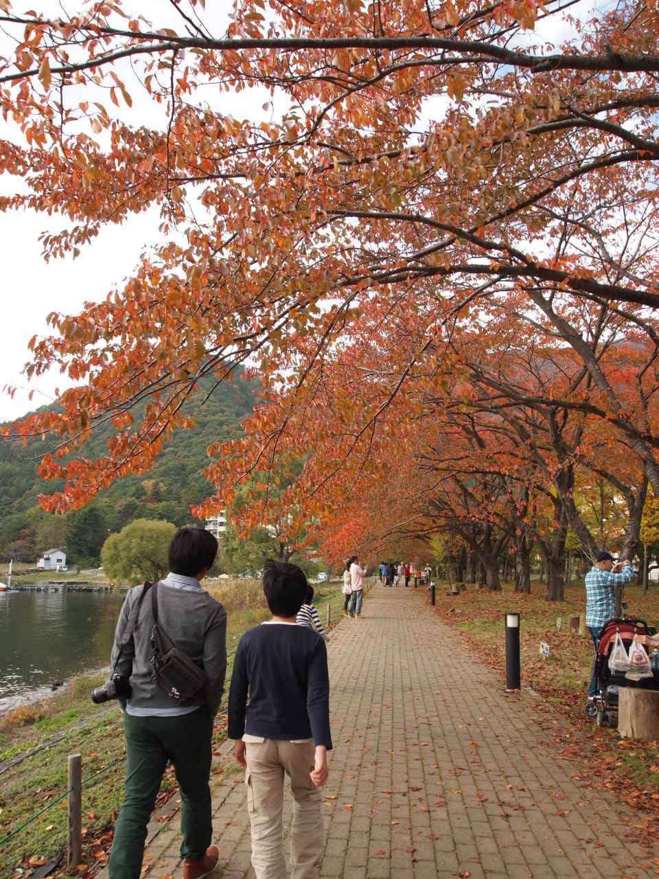 湖畔の木々の紅葉は盛りのようでした。