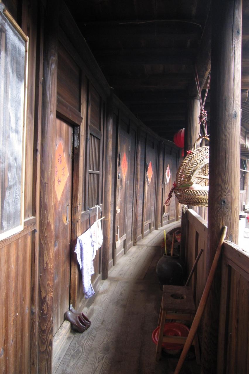 最上階か3階の回廊から眺めた、土楼の内側の光景です。承啓楼の4階の回廊を一回りするのは相当に時間がかかりそうでしたから、途中の階段で下りました。