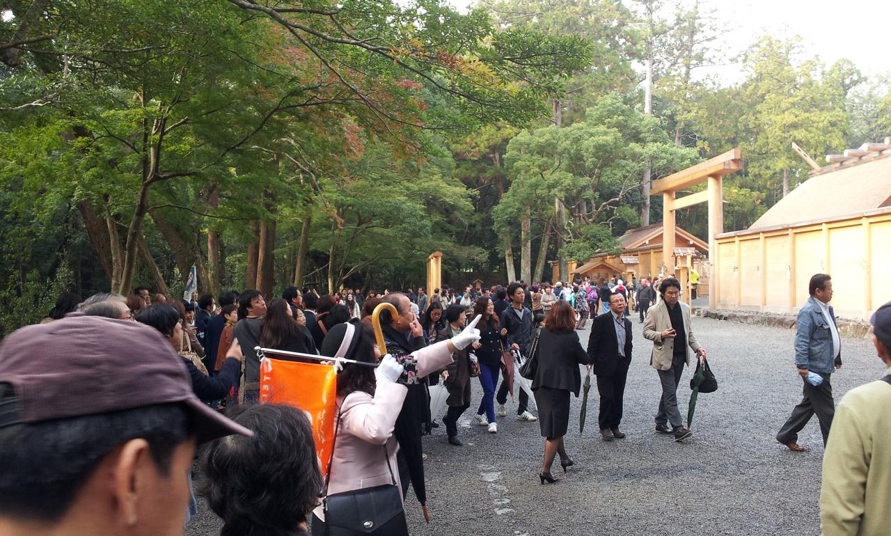 伊勢についたら雨が降っていて、まいったなぁと思ってたら、天照様の気まぐれか、どんどん明るくなってきたかと思ったら、お日様と青空ができました。