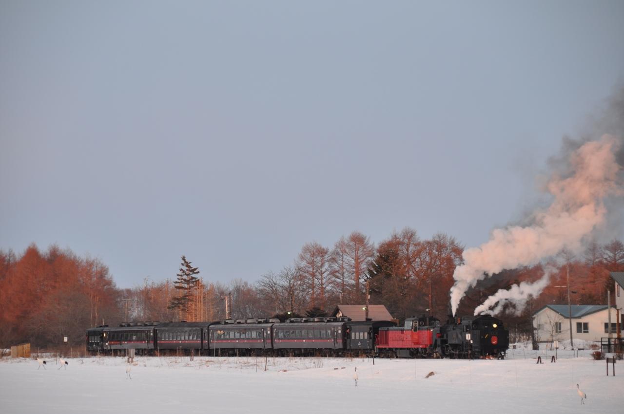 今回の旅行記は、今年(2013年)1月、北海道の釧路と網走を結ぶ釧網本線へ「SL冬の湿原号」を撮りに行った時の話です。この「SL冬の湿原号」は、2000年より運行されており、冬の道東観光の名物の一つになっています。私は撮るだけで乗ったことはありませんが、鉄出撃でよく同行している妻の「ばじなみこ」は、釧路から川湯温泉まで乗ったことがあり、車内は中国語を話す団体ツアー客でいっぱい、と言っていました。今年(2013年)も1月後半から、主に土日を中心に運行が始まり、普段は釧路〜標茶の間を運行していますが、一部の日程で、釧路から川湯温泉へ延長運転されます。釧路〜標茶の多くは釧路湿原に沿うように線路が敷かれており、平坦区間のため、蒸気機関車1両で運転可能ですが、川湯温泉へ延長運転される時は、峠越えの区間があり、蒸気機関車にディーゼルが補機として付きます。以前は蒸気機関車が補機として付き、蒸気機関車が2両での運行もありましたが、最近では補機はディーゼル機関車です。マニアとしては、蒸気機関車2両の運行を期待しています。で、昨年(2012年)の今頃に、2013年の「SL冬の湿原号」の運行が、JR北海道より発表されました。1月26日と27日は、釧路〜川湯温泉で、蒸気機関車が2両で運行とのこと。待っていました!即、飛行機の予約をして、2ケ月間、ワクワクする予定でした。しかし、その後、JR北海道から1両の蒸気機関車の不具合が見つかり、またいつも通り、蒸気機関車にディーゼル機関車が付いて運行との発表。がっかりです。2ケ月前から、燃えていたのに。(笑)でも、せっかく飛行機を予約していたし、大好きな北海道だし、行って来ました。で、美留和〜川湯温泉の撮影ポイントへレンタカーを飛ばして行ったところ、いつも100台ぐらい、鉄ちゃんたちの車が有るのに、この日は10台ぐらいしか有りません。あれ?そうすると、先に着いていた鉄ちゃんに、「さっきラッセル車が通り、JRの方が今日は運行中止と・・・」と教えて頂きました。爆弾低気圧が北海道を襲い、その日、釧網本線自体、運休となっていました。ほんとーに、ツイテいません。私は撮影に忙しく、いつも妻の「ばじなみこ」だけ食べる川湯温泉駅のビーフシチューを食べることはできましたが、やっぱり、撮影したかったなぁ〜。ちなみにここのビーフシチュー、「ばじなみこ」は、ビーフが大変柔らかくて、食べるのに歯が要らないと言っています。この日の夜、釧路と根室の中間ぐらいに位置する浜中の民宿Kに宿泊。わが青春、浜中です。(笑)私はいつもユース・ホステルにお世話になっており、その頃、民宿Kはオープンしました。当時、民宿Kはお寿司が食べ放題で有名でしたが、私はユース・ホステル愛(笑)から、一度も行ったことがありませんでした。今回、初めての民宿Kです。噂どおり、新鮮な食材を使った料理は大変おいしく、その日は我々夫婦を入れて宿泊者は4人でしたが、民宿Kのオーナー様家族もいっしょにご飯を食べて、晩酌です。民宿Kのオーナー様は、元々本州の方で、じつは鉄ちゃん!オーナー様が若い時、まだ現役で北海道に蒸気機関車が走っていた頃、北海道に撮影に来て、北海道が大変気に入り、北海道浜中で民宿を開業し、移住したとのこと。それで、話が盛り上がり、昔の蒸気機関車の白黒写真も見せて頂きました。翌朝、浜中からレンタカーを原野を北西へ走らせていたら、爆弾低気圧の余波で、ものすごい地吹雪。しかし、落ち着いて安全運転です。が、蒸気機関車が運行される釧網本線へあと一歩の最後の虹別原野が雪で通行止め。この時は焦りました。せっかくの蒸気機関車の撮影に間に合わない。スリップで車の事故も目撃し、ナビを駆使しても、抜けれる道が探せ出せない。結局、ダメもとで行ったルートが、どんぴしゃりで、はい、蒸気機関車に間に合いました。よかった、よかった。しかし、以前の「ラッセル車」の旅行記で書きましたが、この1ヶ月後、またまた北海道で爆弾低気圧に遭遇。ツイテいません。(笑)表紙写真は摩周駅。この撮影の直前、100mの範囲で、鉄ちゃんと思われるレンタカーの事故を立て続けに2件目撃。鉄ちゃんの皆さん、安全運転を。特に冬の北海道では。(笑)そして最後に、これを読んで頂いている知人の皆様、この表紙の写真が今回の年賀状の写真の有力候補です。(爆)