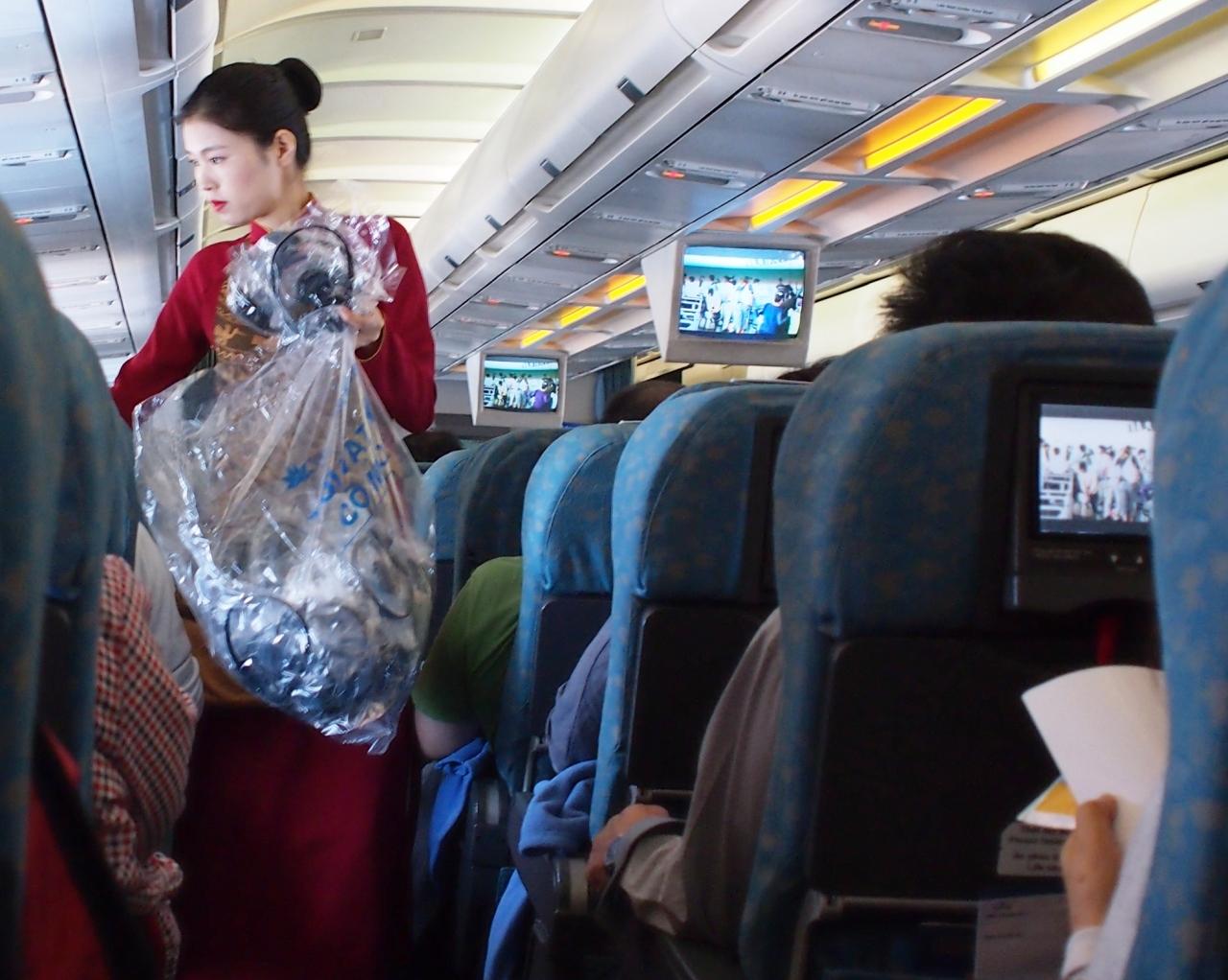5時間20分のフライトを終え、ホーチミンからはカンボジア航空でシェムリアップに・・真新しい機材でした。