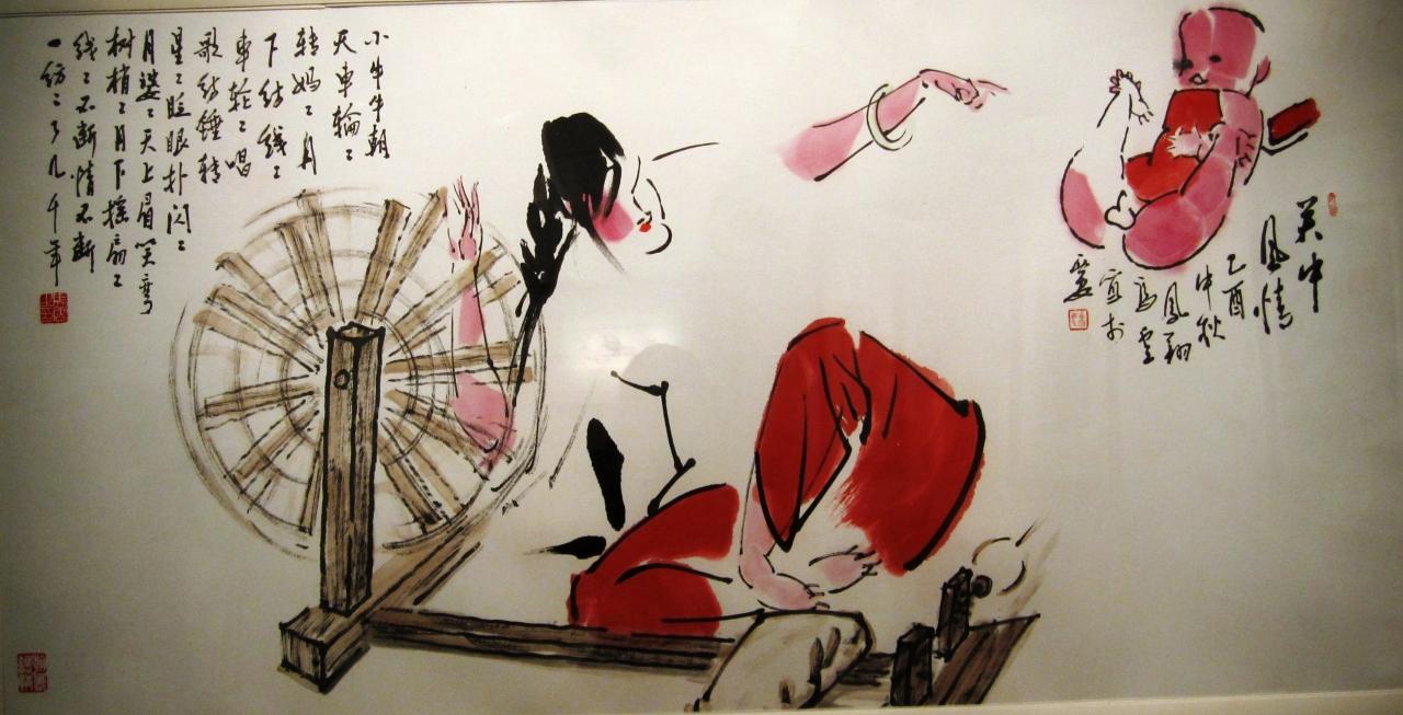 この日、最初に訪れたのは『美術博物館』でした。2年ほど前、シルクロードの見学の帰りに立寄りましたが、タイトルに『少し怪しい』としたのは、最初に、本物の絵画を見せて、次にマガイ物と思われる品を売りつける商法のためです。本物であれば、日本円で数百万か1千万円以上はする『玉製品』、焼物等を数十万程度以下で売り捌いていました。焼物は安価な新製品で、『玉製品』類は、ガラス製品か、練物製品と見て、まず間違いありません。油断させるための絵画ですが、絵画に責任はありませんので、作品名と作者を紹介しておきます。 『