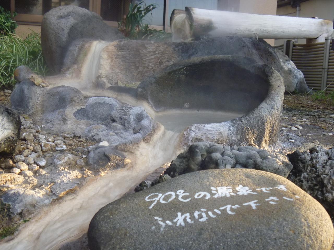 玄関前に高温の源泉が。熱過ぎて、手湯にも足湯にもなりません。見るだけです。