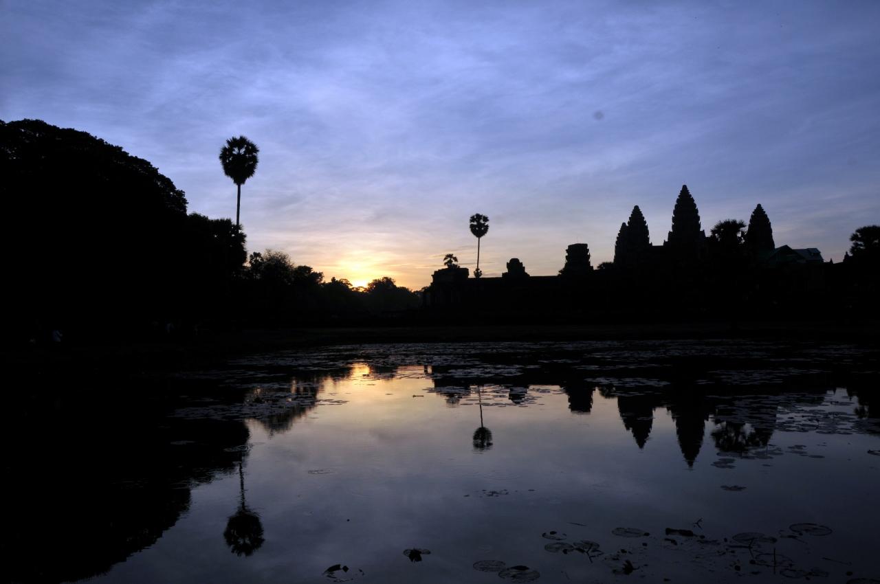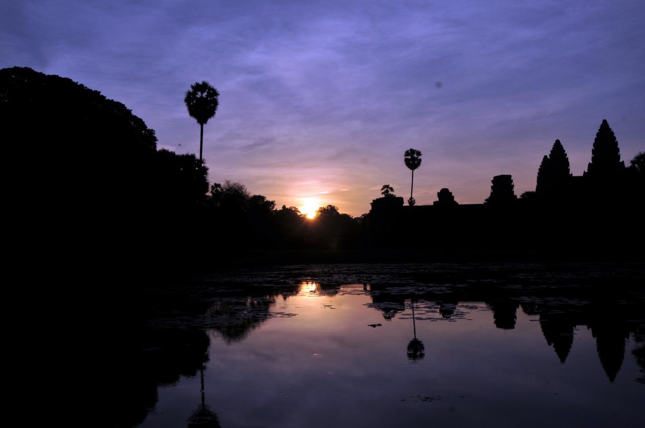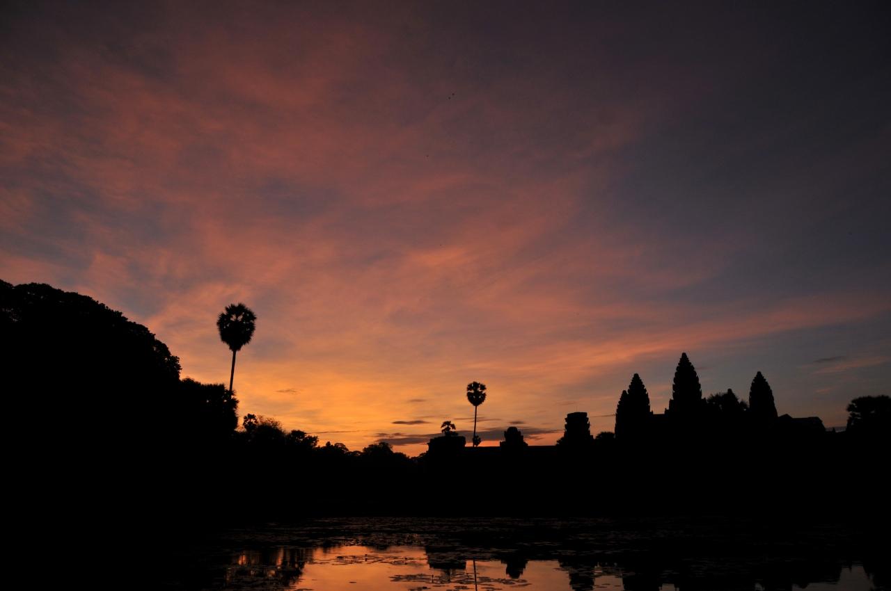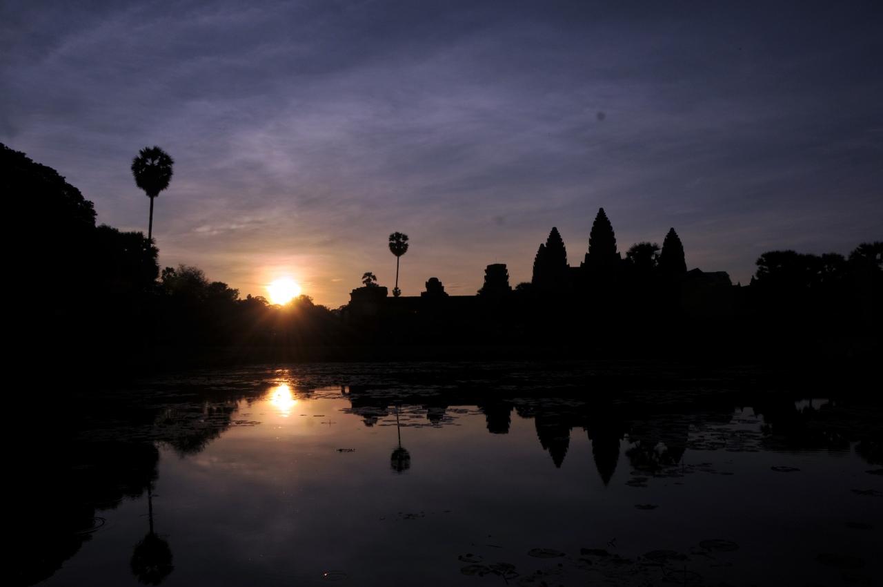 夜明け前にゲストハウスを出て、アンコールワットの朝日です。 -