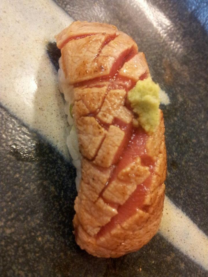 28貫目、アトランティックサーモンの炙り。