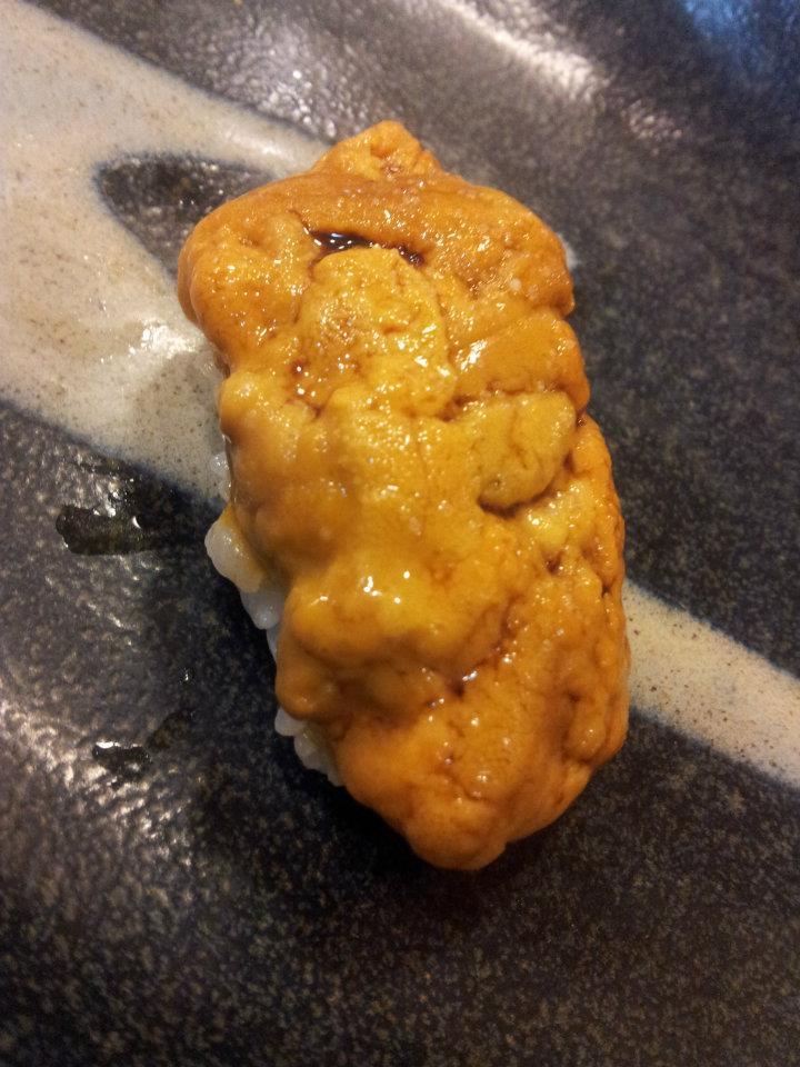 13貫目、雲丹です。海苔で巻く軍艦は雲丹の味を邪魔するのでにぎってくれます。