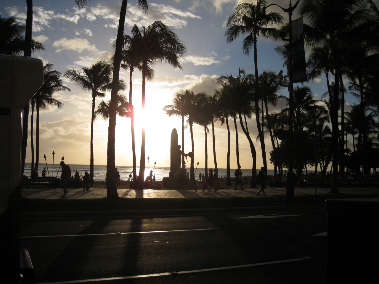 ホノルルから到着してから車が渋滞していてワイキキについたのは8時ぐらいでした…。 -